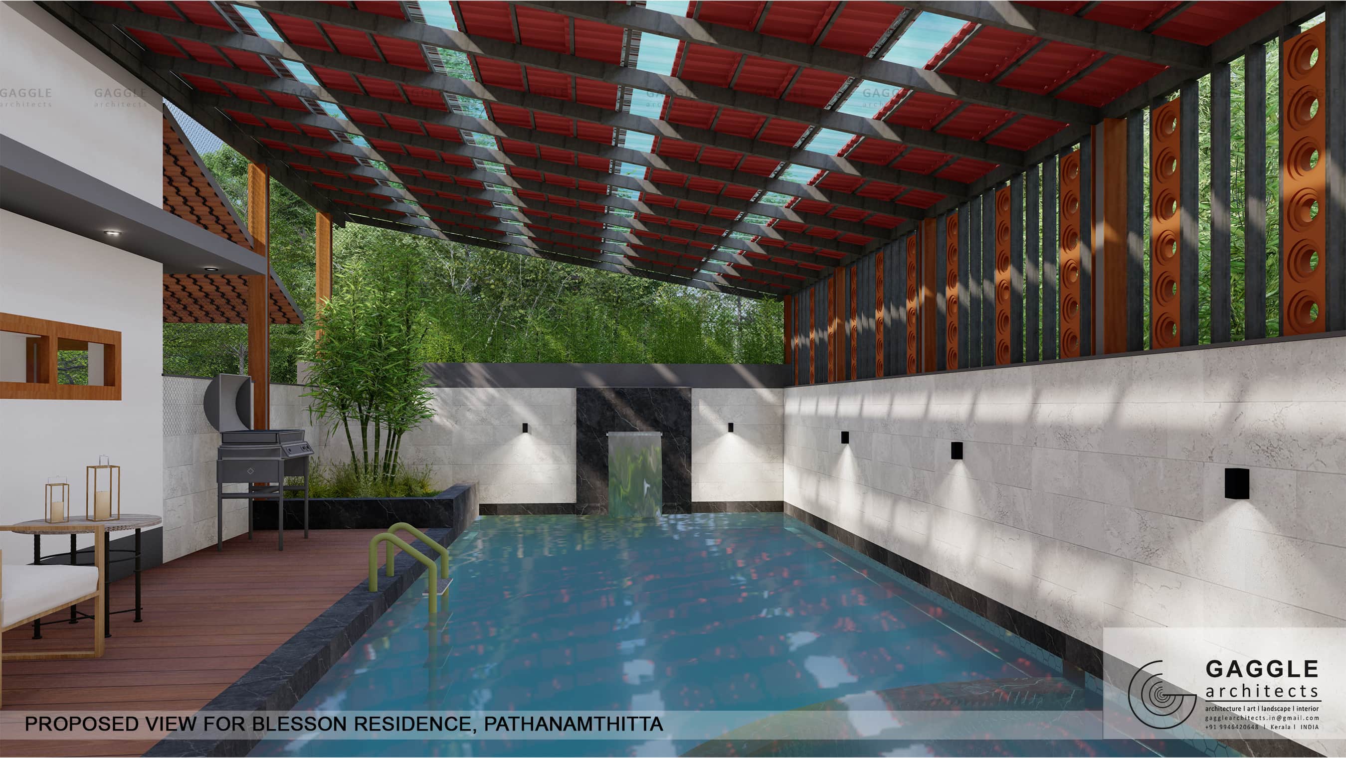 This project is an amalgamation of contemporary form with Traditional material, with strong importance for the beauty of the project to shine through it's oneness with nature. With a green courtyard, the abundance of landscape with lush trees and a walkway, this project aims at creating a relaxing and calm environment, that behaves almost like a getaway.